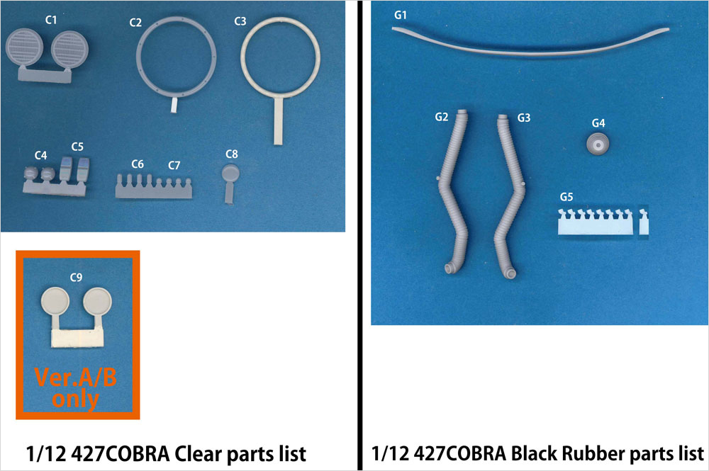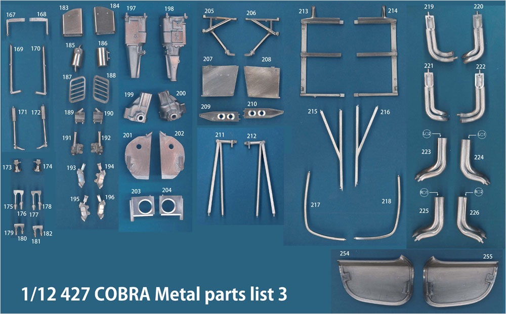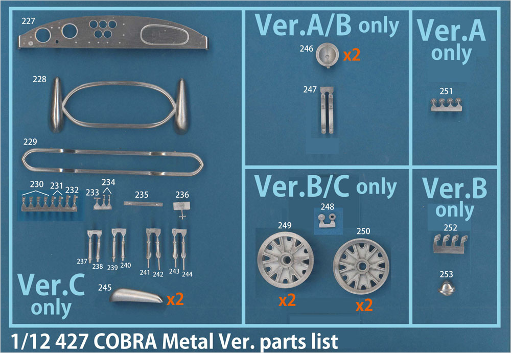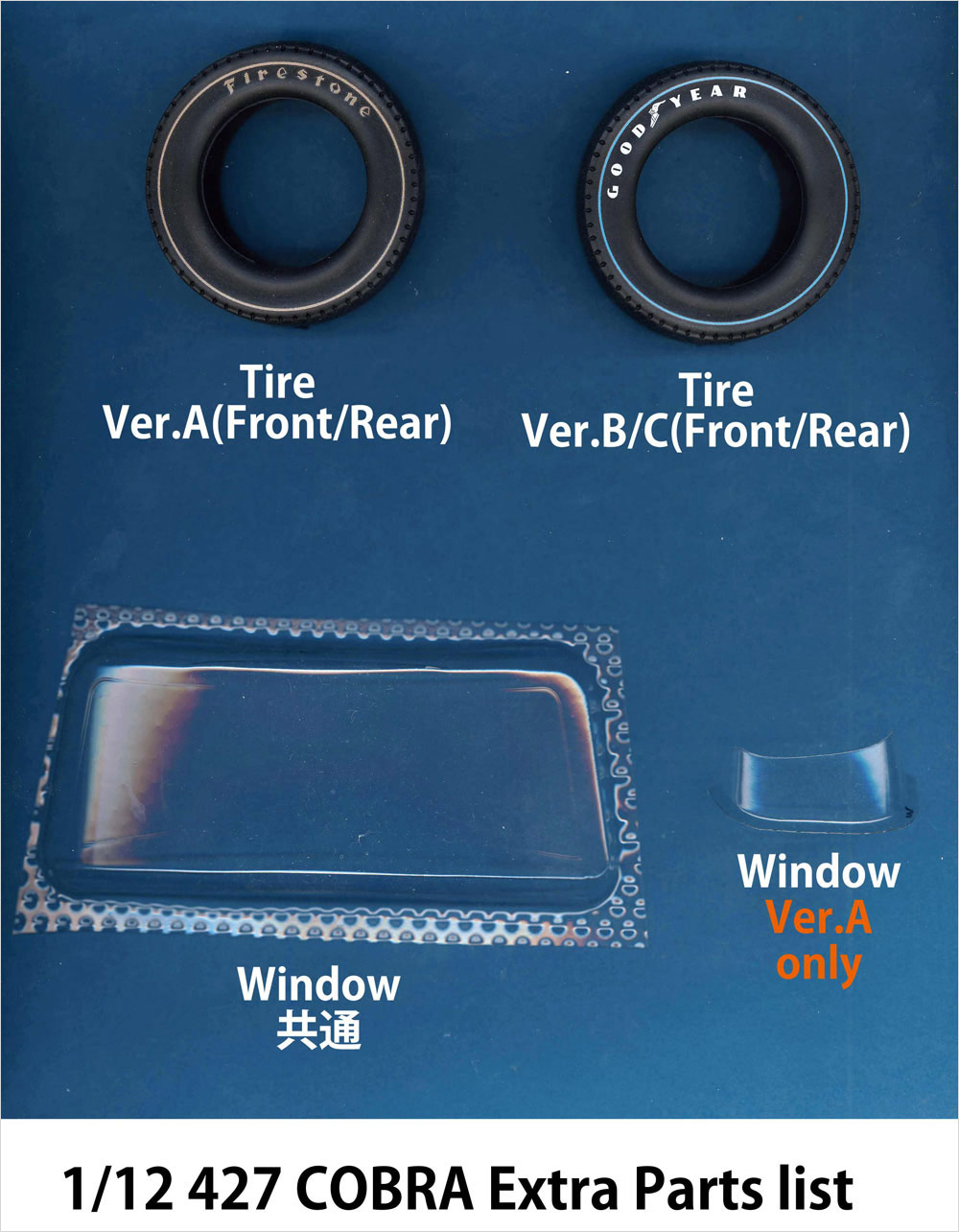 C.シェルビーにより英国製シャシーにアメリカンパワーユニットを融合させ、数々のレースで活躍したアメリカンスポーツカーの代名詞ともなった名車「コブラ 427」の1/12スケール・フルディテールキットです。