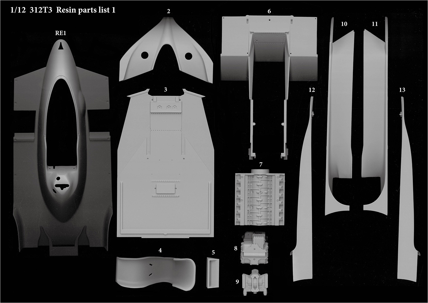 チャンピオンマシン「312T2」から、モノコック、ボディなど大幅な改良を加え1978年のグランプリを戦った「フェラーリ・312T3」の1/12スケールフルディテールキット。