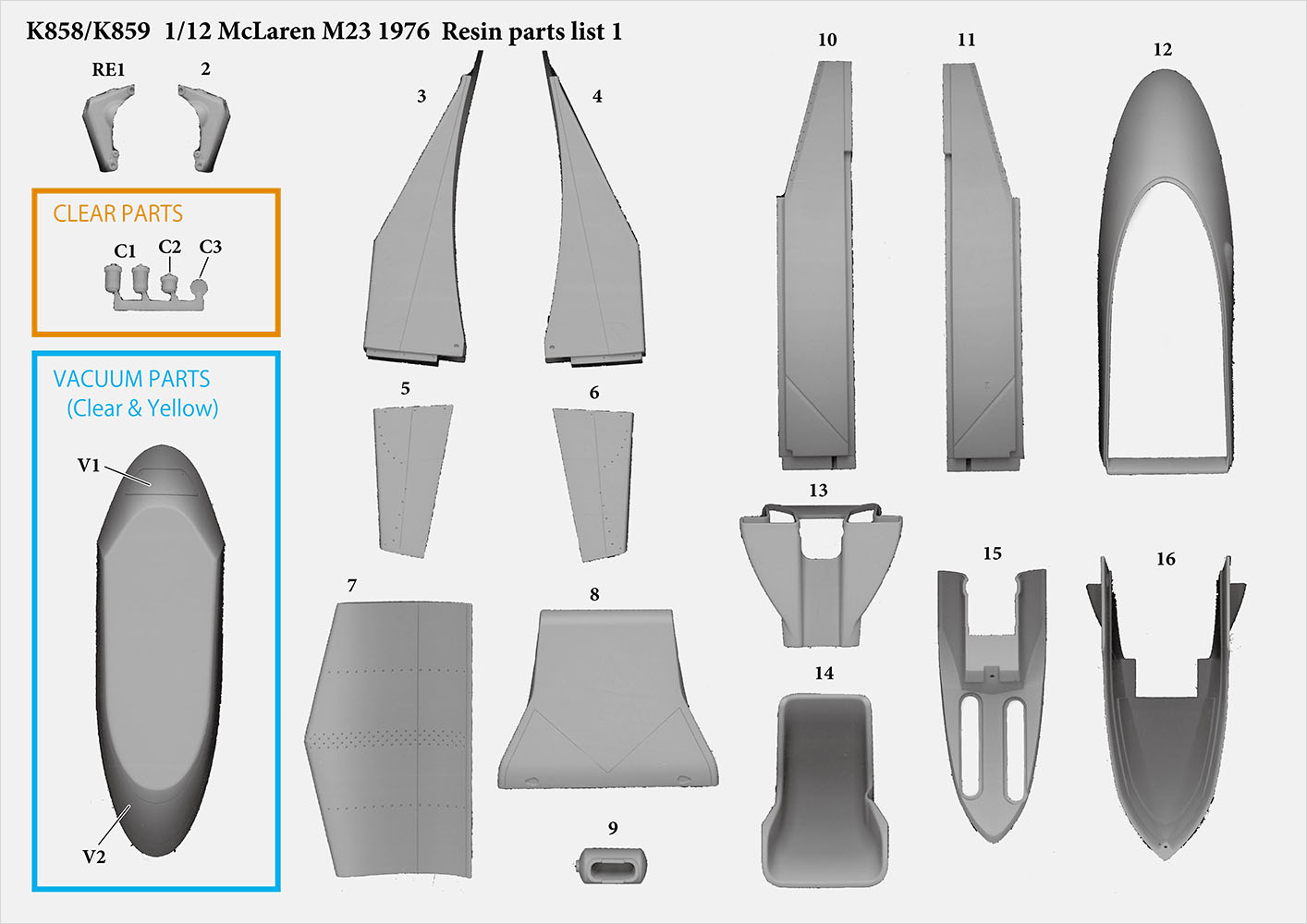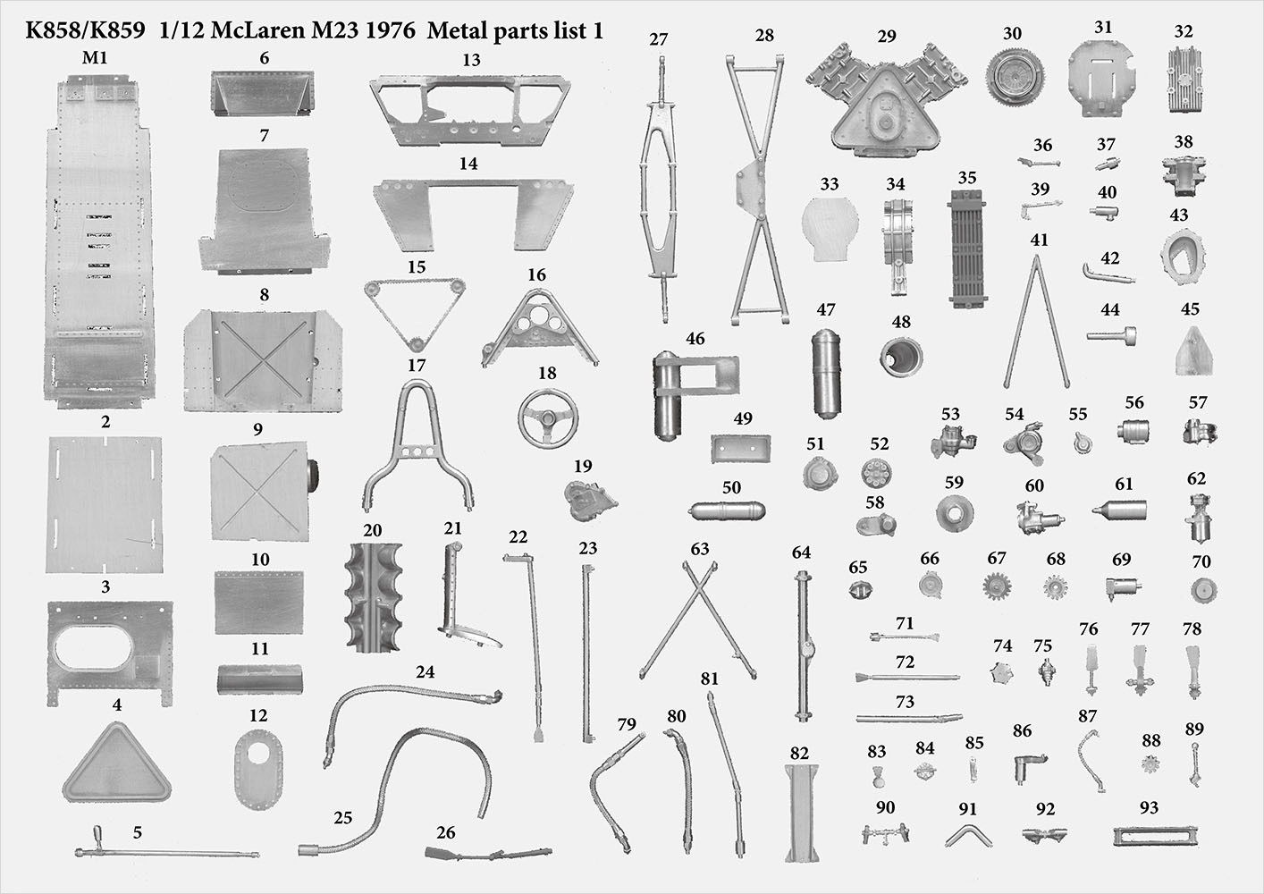 1973年シーズン途中から投入されたマクラーレンチームのF1マシン「マクラーレン・M23」の1/12スケール・フルディテールキットです。