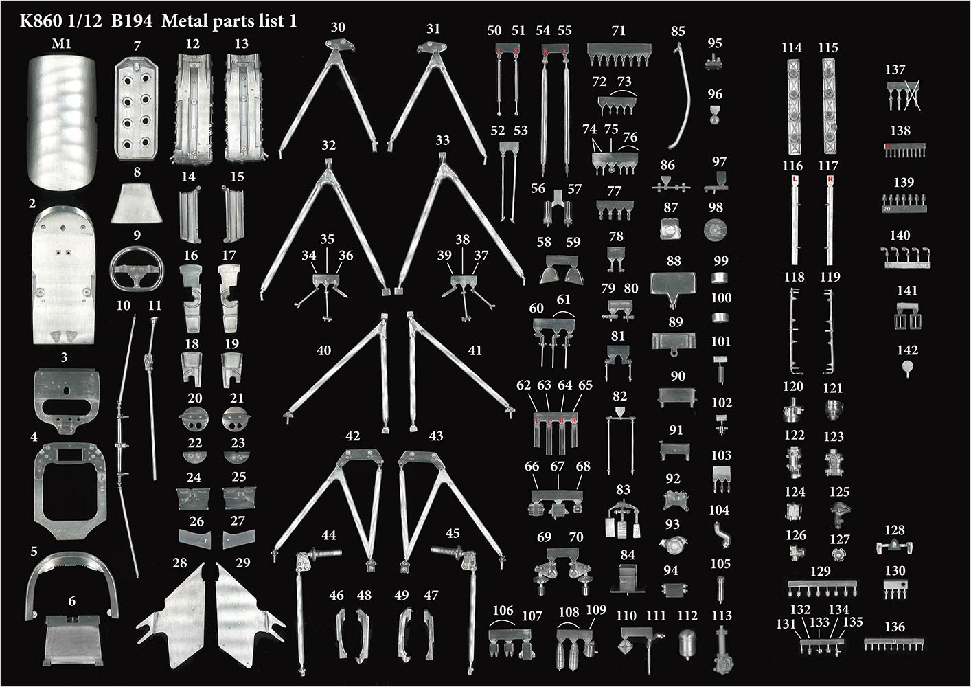 ■ レジン、ホワイトメタル、エッチング、シルクスクリーン印刷デカール、ゴムパーツ、アルミ挽き物、各種コード類等をふんだんに使用したマルチマテリアル・キットです。