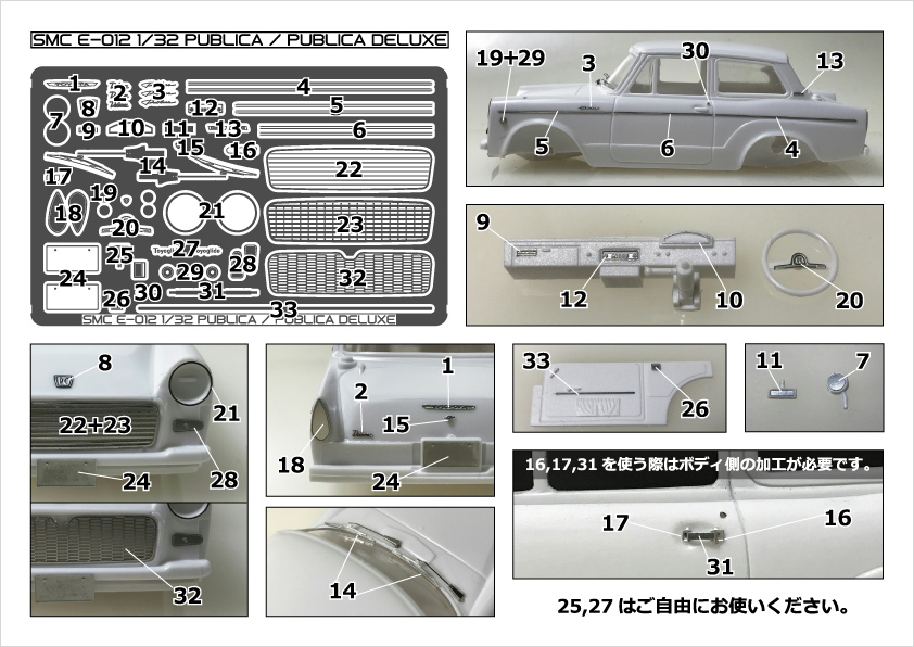 M社/A社 1/32スケール「パブリカ」のディテールアップパーツセットです。
