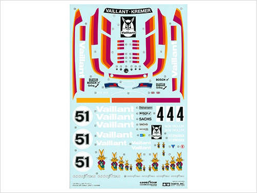 グループ5レーシングカーによるメーカー世界選手権レースなど活躍した「ヴァイラント」をメインスポンサーとしたクレマーレーシングのマシン「ポルシェ 935」の1/20スケール・プラスチックモデル組み立てキットです。