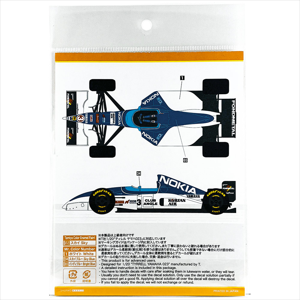 タミヤ 1/20スケール F1キット「ティレルヤマハ 023」に対応するデカールセットです。